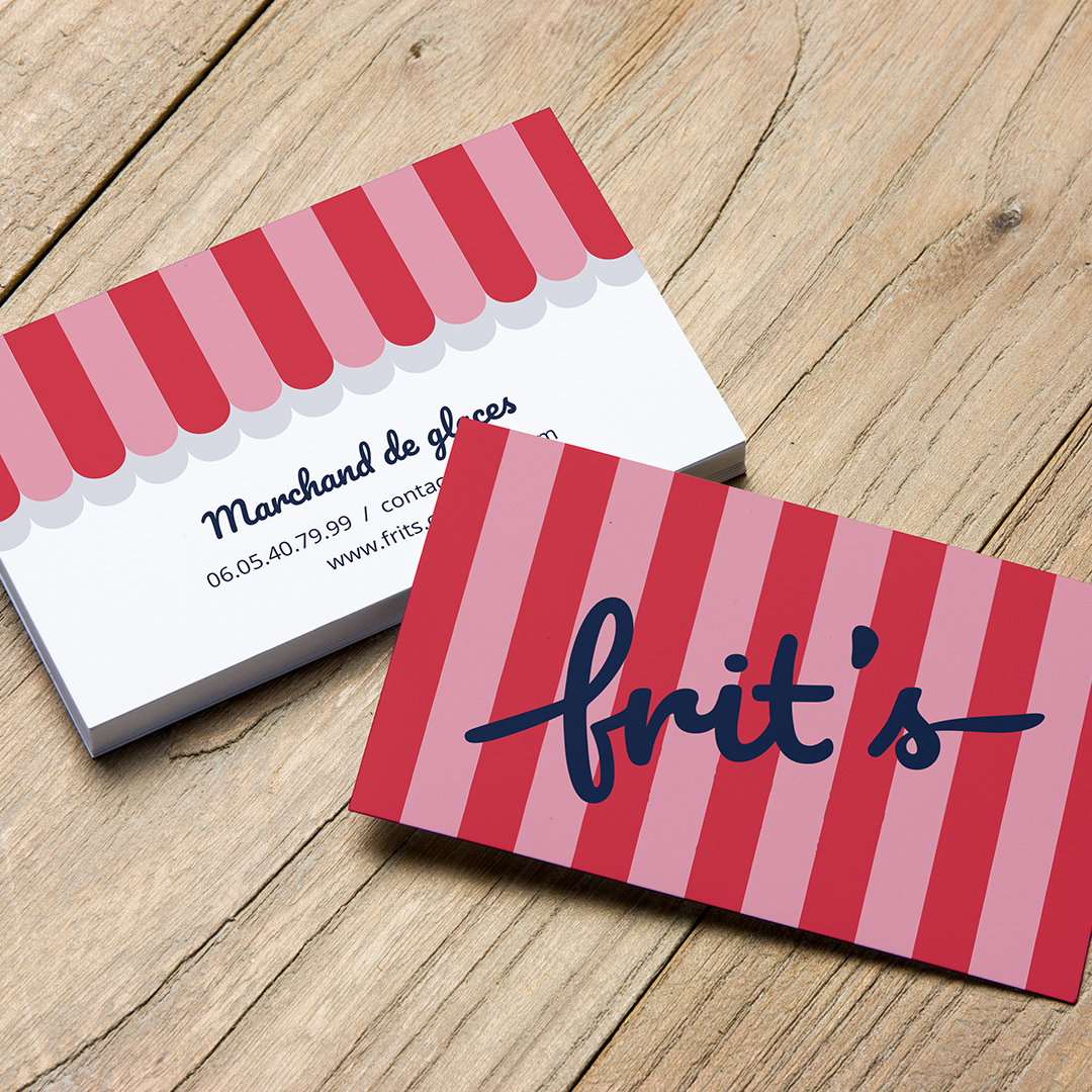 La carte de visite du marchand de glace a été imaginée avec des couleurs acidulées qui rappellent non sans une certaine nostalgie les marchands de foire de notre enfance.